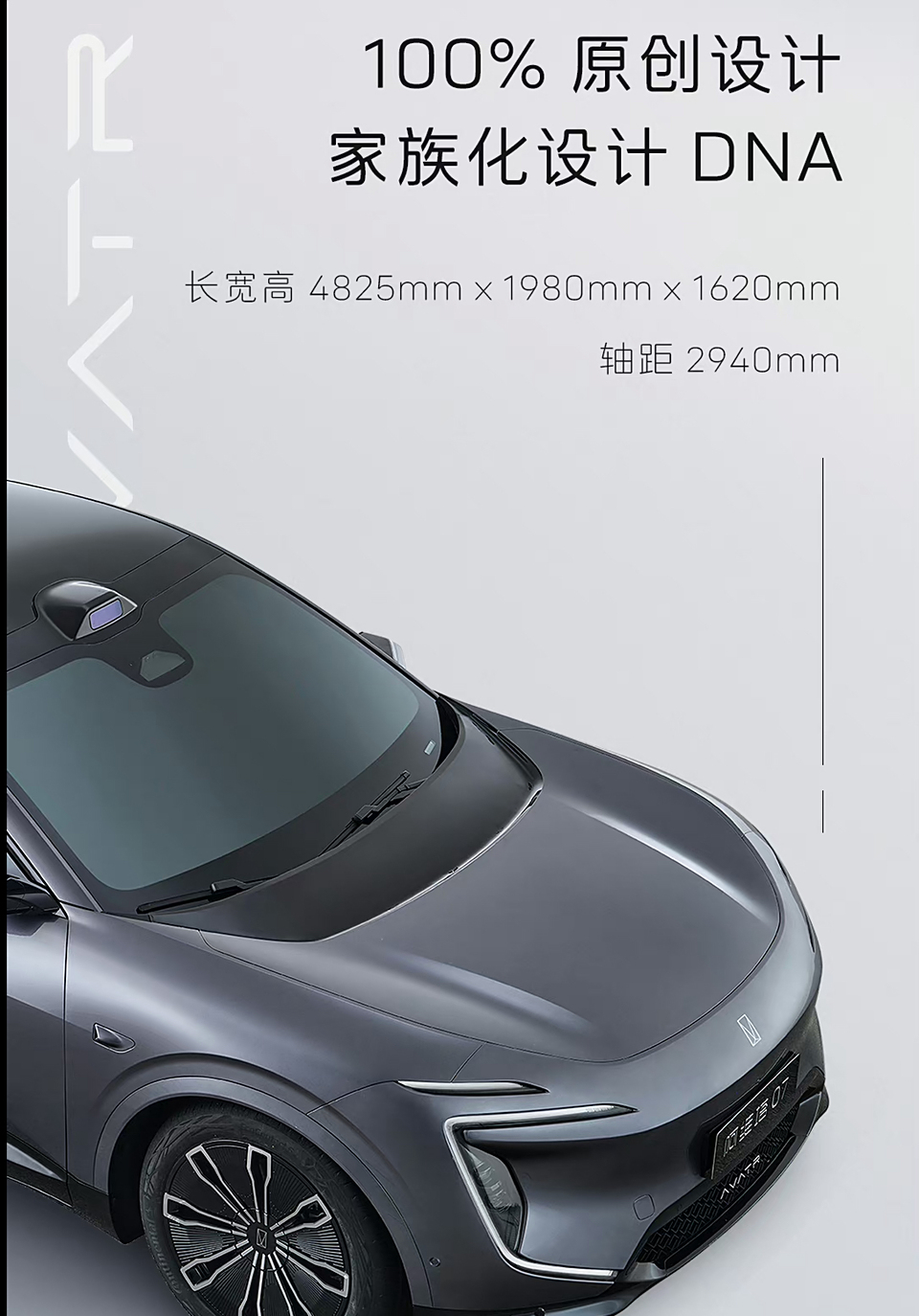 在阿维塔07的宣传海报上,彻底标注了百分之百的原创设计,家族的DNA