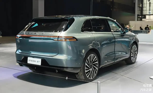 车身尺寸方面,星纪元ET定位于中大型SUV,长宽高分别为4955/1975/1698mm,轴距为3000mm。侧面造型简洁,车顶略带弧度,没有行李架或鲨鱼鳍。车尾设计略带溜背式,配备宽大的扰流板和高位刹车灯,下方的后保险杠采用黑色,与车身形成撞色效果。