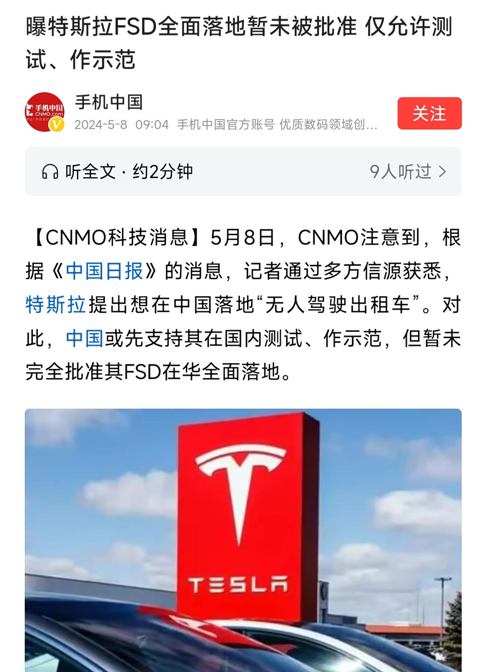 特斯拉FSD全面落地中国未被批准,只允许测试 马斯克终究没有得到他想要的结果,其实大家早就猜到无阉割版FSD在国内是无法落地的,这其中的原因太复杂,有数据安全原因,有驾驶安全原因,还有竞争原因等等。那么大家觉得什么情况下FSD会全面落地国内市场呢?