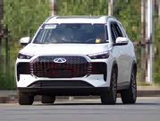 绕到前面之后才发现,确实是新款车型,但是不是探索06的改款还不能理解下结论,只能看出大灯部分明显是普通式样了,而探索06则是分体式大灯的设计,格栅部分重度伪装,但是注意直瀑格栅的细节,似乎和前期露面的T15FL4非常接近。