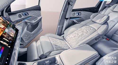 彩色电视:NezhaL采用环绕式布局,车内配有两块15.6英寸的大尺寸显示屏。中央控制屏幕一直延伸到乘客座椅。在高通骁龙8155芯片的支持下,该车的信息娱乐系统带来了更愉快的音频和视频娱乐体验。浅色内饰的整体质感不错,有菱形花纹的座椅,头枕上有Nezha标志;