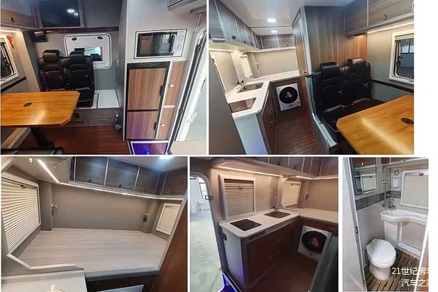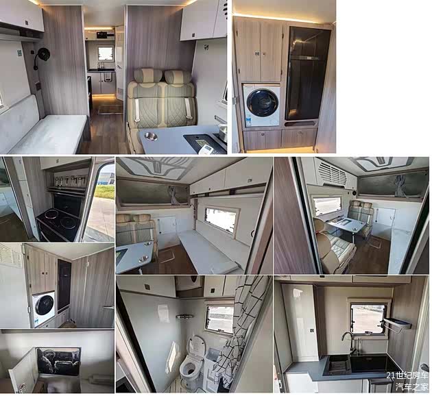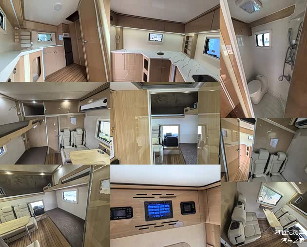生活区由额头床、对卡座会客区、厨房区、卫浴间、尾置横床组成,新车核载6人,生活区可乘坐4人。休息区划分为额头床、横床、会客区拼床,新车预留了至少5人的休息区域。