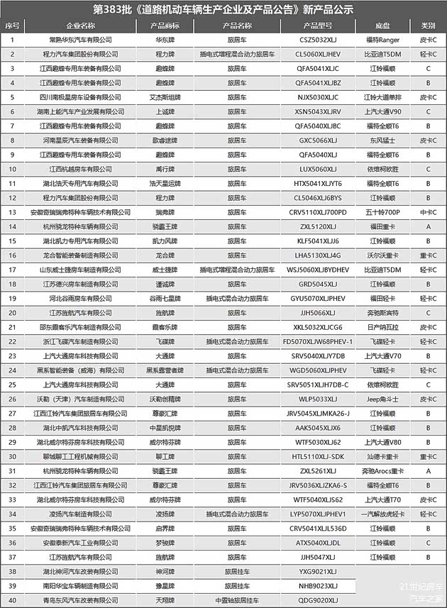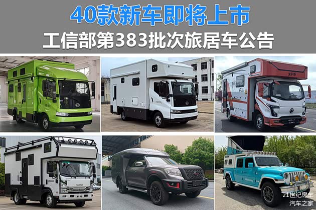 据统计,383批次公告中,C型房车占21款,B型房车14款,A型房车2款。