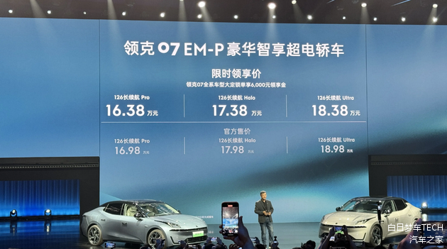 入门款的领克07 EM-P 126长续航Pr权益价是16.38万;