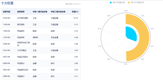 港股通红利30ETF(513820)标的指数行业分布上,权重靠前的行业为银行、交通运输,占比各20%左右,石油石化(12.6%)、非银金融(9.0%)、煤炭(8.7%)、通信(8.5%)紧随其后,行业分布相对均衡。指数成分股聚焦大市值龙头企业,覆盖了多家关键基础设施行业的龙头央企,前十大成份股权重占比约50%。
