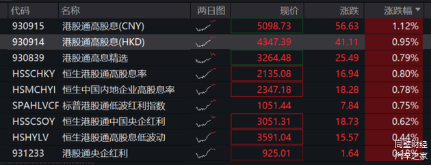 【港股通高股息(930914)成分股5.20盘中涨幅】