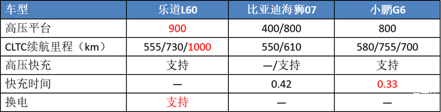 所以在补能续航这块,乐道L60一马当先,然后是海狮07,虽然它不是全系800V,最长续航不过610km(CLTC工况),但靠着全域智能快充技术,它还是能省下大量时间。至于小鹏G6,虽然是全系800V,但也只能屈居第三。