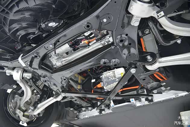 我们这辆车是最低配的后驱单电机版本,没有前电机,所以前副车架上方比较空旷。