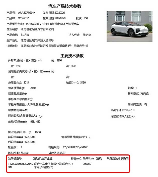 也就是说,雷总说小米自研的“超级电机V6”,其实是联合汽车电子三年前的产品。信息如此透明的今天,咱好歹重新改一个电机型号,再重新申报一下也好啊!
