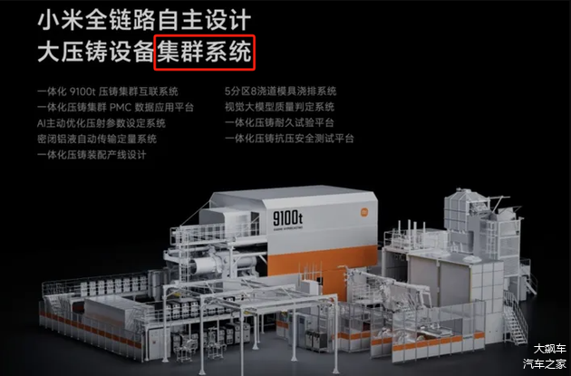 我们先不讨论“9100T”压铸机的供应商是谁,只需要知道小米并没有说过一体压铸机是自研的,只是说“集群系统“是自研的!所以如果你注意了话术的名词,忽略形容词,就能找到重点了!