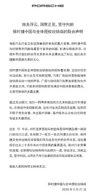 网传的保时捷部分中国经销商“逼宫”的信息,在保时捷官方发布了与全体授权经销商的联合声明后得到确认。现在,保时捷在国内市场早已经不是“一车难求”。稳定现有的经销商网络,让更多经销商愿意给自己吆喝来卖车,这是保时捷的当务之急。