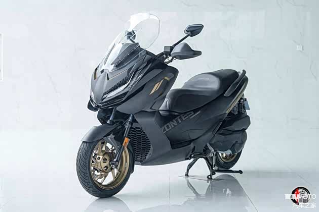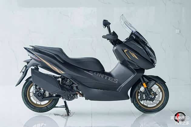 368E的外观造型相较于368系列的其他两款车型更为宽大饱满。整车线条圆润且流畅,宽大的前整流罩成为其外观的一大亮点。与上代车型相比,新款在整流罩细节上加入了凌厉的金色线条作为点缀,强化了整车的时尚气息。同时,新车推出了四款风格各异的涂装版画,特别是磨砂黑与金色的撞色设计,使得整车外观更为炫酷。