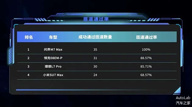 获得匝道大满贯的是问界M7 Max,即便是施工场景 + 大卡车近距离Cut in,也依然挺过去了。