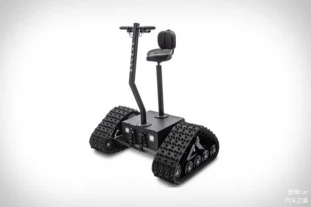 看到实车,你就该知道它为什么叫“装甲车”了。这个工业风满满的硬核滑板车,就像是一个狂野版的Segway。它的方形基座内放置了两个直驱电动机,用于驱动两套履带装置。最高时速能达到24公里/小时,充电一次续航可达一小时。你只需握紧高耸的把手,就可以在各种极限工作场景中来去自如了。目前官方还在给它开发座椅、工具箱之类的配件,当然,你也可以亲手对它进行改装。