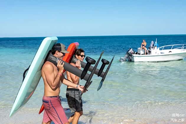 如果你已经不满足于在地表横冲直撞了,也可以考虑去水中撒欢儿。定位亲民的浪飞LIFT3 F,就是一个很得体的选项。遵从流体力学设计的玻璃纤维板身,在稳定性和低风阻两方面都有上佳表现。碳纤维水翼、轻量版电池、铝合金推进器……得益于在减重上下的大量功夫,其综合续航能达到1小时。如果换装长续航电池,这一成绩能拓展到100分钟,绝对够你玩到脱力了。