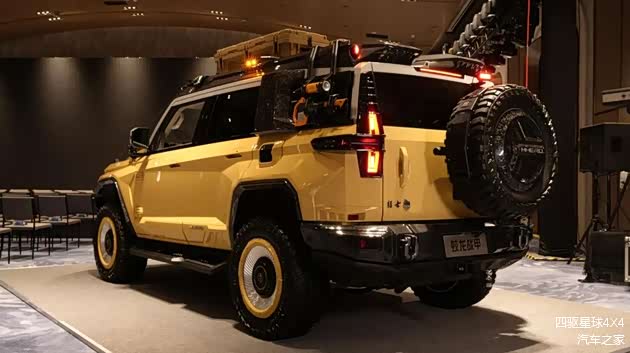 猛士917蛟龙战甲还采用了军工美学设计,车顶平台的防风罩借鉴了军车的迎弹面设计,全封闭旋翼锻造轮毂的灵感则来源于军车,而车身同色的车门防擦板更是巧妙地融入了枪械元素,把战斗气质拿捏得妥妥的。