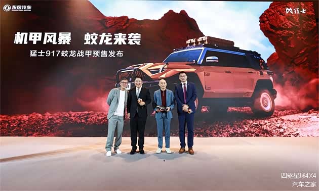 发布会现场,《蛟龙行动》导演林超贤成为猛士917蛟龙战甲的002号车主,中国著名导演刘伟强成为猛士917蛟龙战甲的003号车主,并与001号车主博纳影业董事长于冬同台亮相。