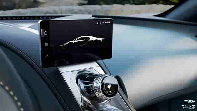 这三块圆形仪表是由Switch手表制造商设计开发的,它被永久的固定在方向盘上,会跟着打方向一起旋转,而且你看到仪表中那小小的齿轮吗?它真的会跟随指针一起转动。中控T字区域保留了一堆旋钮与按键,而且顶部还隐藏了一块娱乐信息屏,开启后会升起然后自动旋转,支持苹果CarPlay。