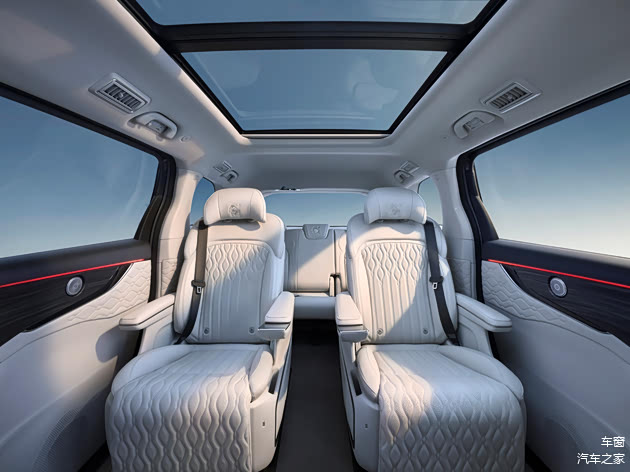 同样是2万块的差价,来到了青云梯系列的尊贵型。首先可以得到一个高配车型才有的车头造型,另外,配置方面可以看的出来该系列车型更多的增加了豪华以及娱乐设备,例如前排座椅加入了按摩功能,第二排座椅也同样参考前排座椅的通风、加热、按摩配置。同时,该车作为卖点的副驾娱乐屏也有所配备。让人感到惊喜的是,后排也增加了两块娱乐液晶屏。而全车隔音玻璃也会让乘坐舒适度也有一个明显的提升。所以这两万块的增配也可以说是物有所值。
