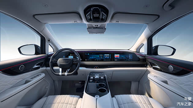 内饰部分,中控台根据配置不同将分别提供双联屏和三联屏配置,其中高配车型采用12.3英寸液晶仪表屏+16.2英寸触控液晶屏+12.3英寸副驾娱乐屏组成长达41英寸的前排智能三联屏设计。还配备高通骁龙8155芯片和腾讯TAI 4.0智能车机系统,可以提供丰富的娱乐体验。另外它的高配车型还配备L2+级智能辅助驾驶系统,具备高速NOA功能、50m循迹倒车和智能变道等功能。