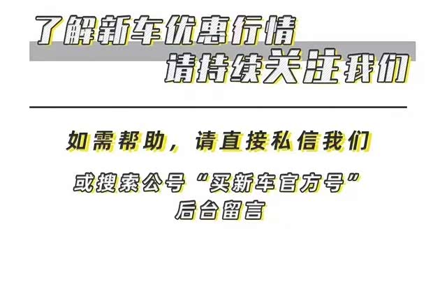 同时,站长温馨提示,购车优惠方面的任何问题都可以随时联系我们,买新车有最专业的行情咨询服务团队为大家提供最有价值的服务,来帮助大家购车省钱,小伙伴们可以后台私信我们,也可以搜索公号“买新车官方号”给我们留言。