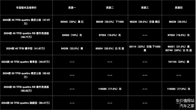 上汽奥迪旗下三款车型目前都是新老款共同发售,老款基本都有一定的库龄时长,价格方面会比新款更大,但是本次盘点我们只分析最新发售版本,如果想了解老款车源的行情还请单独联系站长。