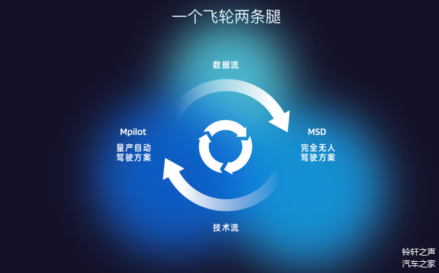 “一个飞轮”指的是数据驱动的AI飞轮,“两条腿”则分别指L2级别的量产智能驾驶和L4级别的无人驾驶。