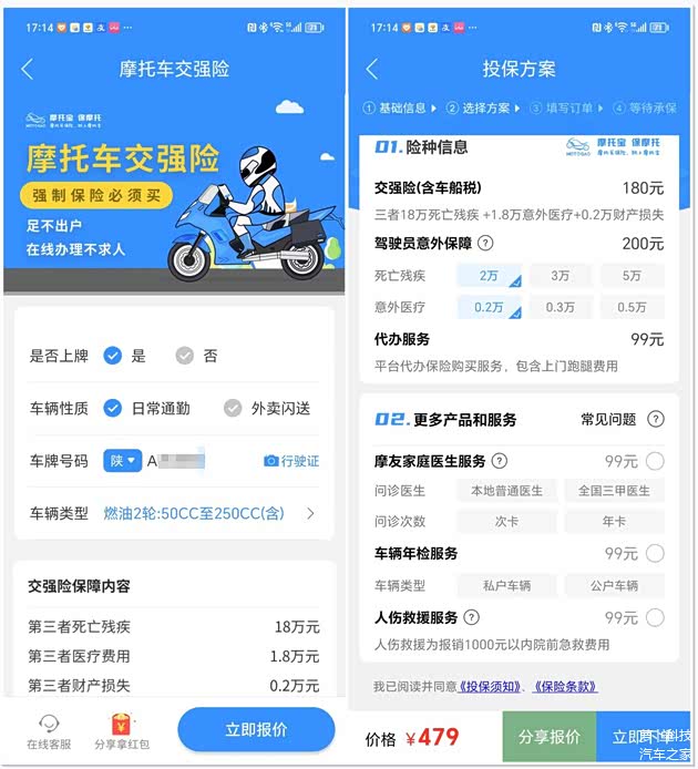 另外一种方法是下载“摩托宝”APP购买交强险,不过这个交强险不能单买,捆绑了商业险,且要交代办服务费,如果你的商业险别的地方不容易买,可以选择摩托宝试试。