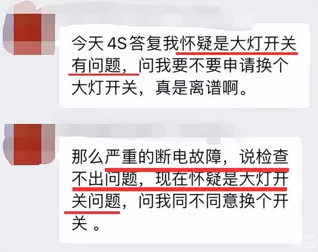 在参谋长说车介入之后,4S店吴主管告知邓先生:“经过十三天检查,现在判断是大灯开关有问题。”