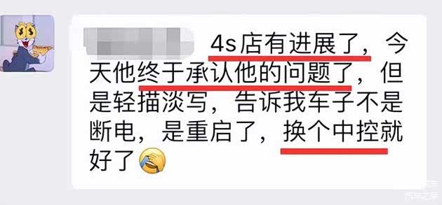 事情终于有了新进展,4S店和厂家现已承认车辆存在质量问题——主机重启,引起娱乐屏黑屏,建议更换主机。