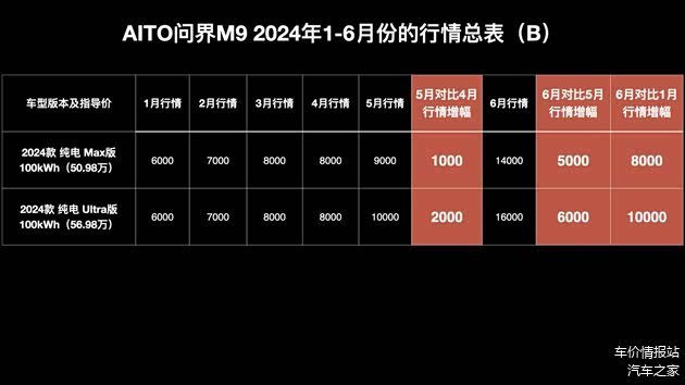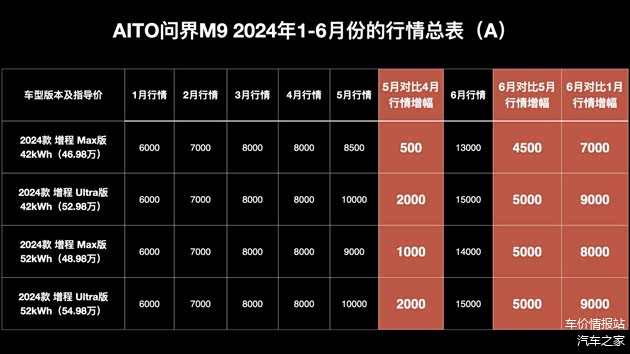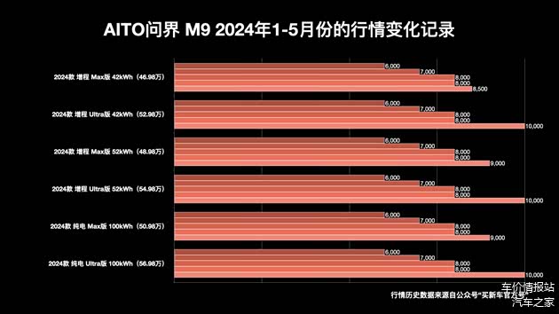 问界M9所有的行情都不是基于现车,而是预订和期货车源。现车根据不同版本不同配置价格一车一议。