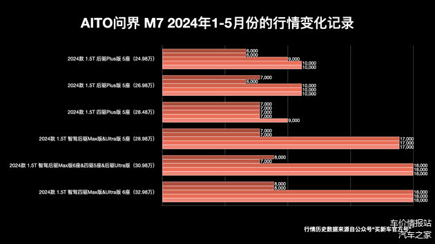 用户的支持当然离不开产品力的强大,对于问界旗下车型的技术亮点本文不做阐述,我们依旧只分析行情,来看看大销量的背后会不会是源自大优惠,来看看有没有好的购买方式能让消费者尽可能的不花冤枉钱。