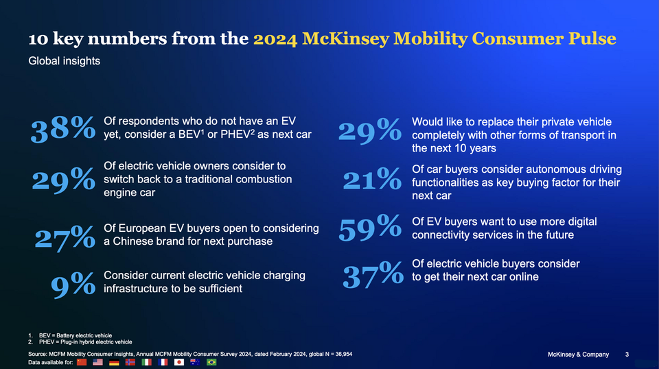 据麦肯锡刚刚发布的市场研究显示,在欧洲,现在有27%的电车消费者更偏向于选择中国品牌。