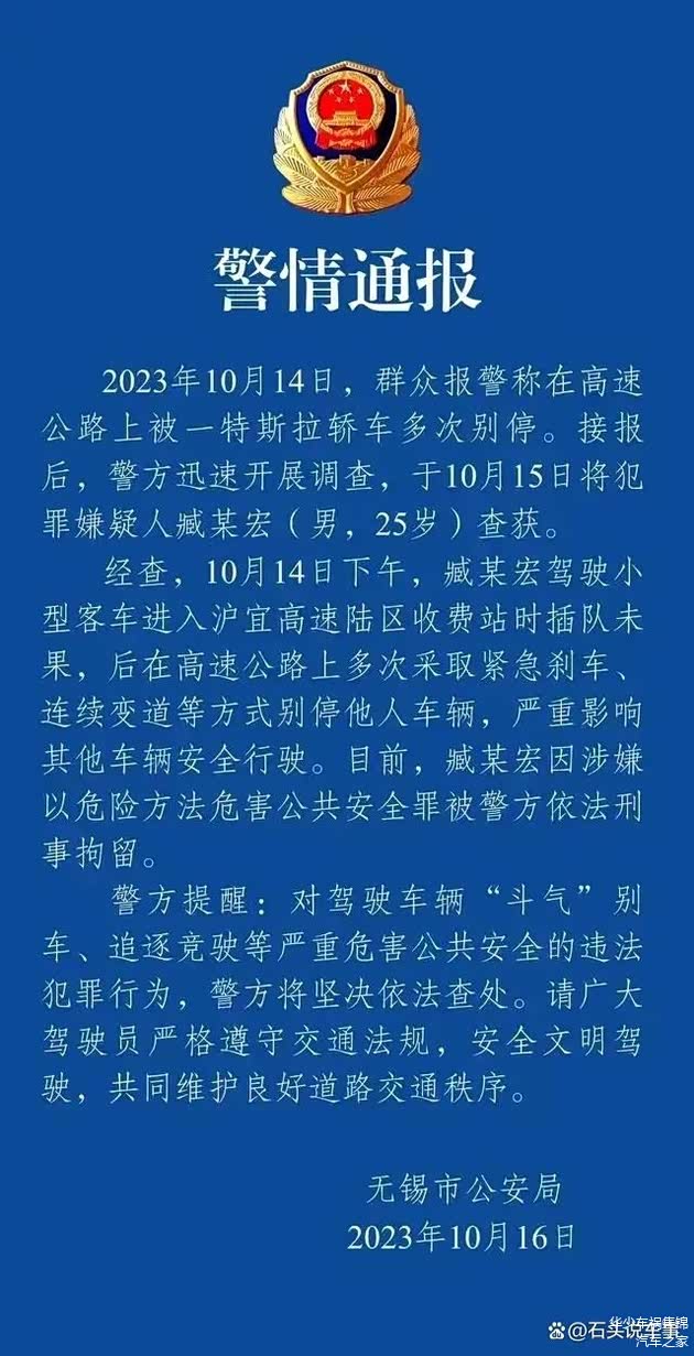 案例:2023年10月,臧某驾驶特斯拉轿车在进入沪宜高速陆区收费站时,强行从右侧插队,被后车阻止,进入高速后,臧某驾驶车辆多次对后车进行别车,多次在高速上随意实线变道,数次逼停后车,甚至还在高速上停车,警方经过调查后,对臧某进行刑事拘留,罪名是涉嫌以危险方法危害公共安全罪。