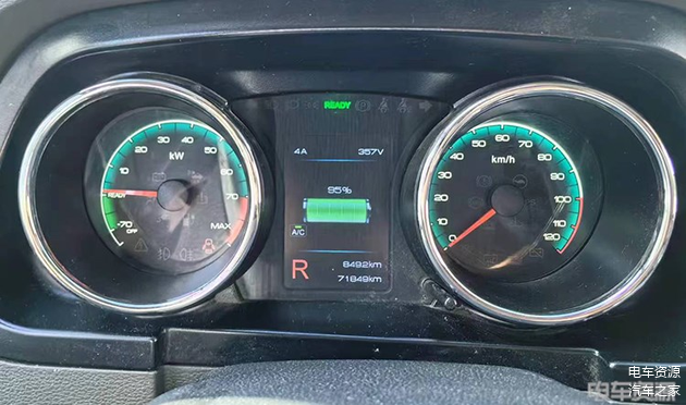 杨师傅一般会趁着早上电价较低的时间段先给车辆充满电,然后开始一天的接单,这样的用车成本更低,也不用担心上午配送的续航。电车君上车时仪表盘数据显示为71849km,剩余电量为95%。