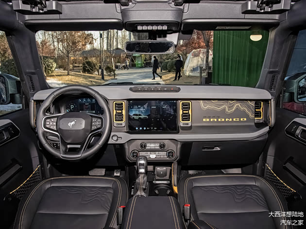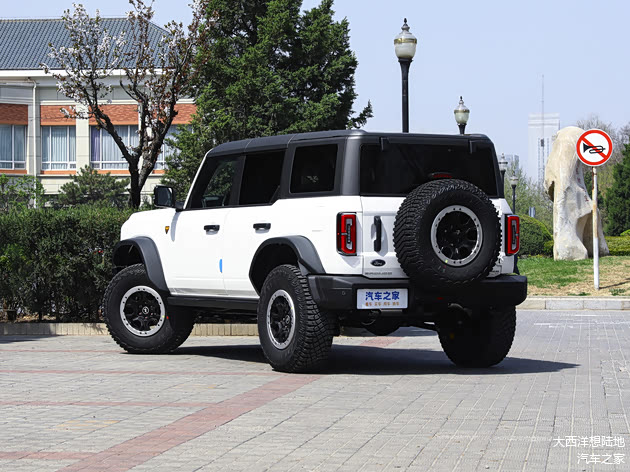 福特烈马前脸突出了复古且别致的圆形大灯设计,同时搭配没有边框的前进气格栅,毫无违和地融入了两侧区块格栅,特别夺目的是格栅顶部还镶嵌有BRONCO品牌的镀铬标志。此外,为了增强越野能力,我们在前保险杠周围添置了众多越野套件,并提供多样选装包供您挑选。