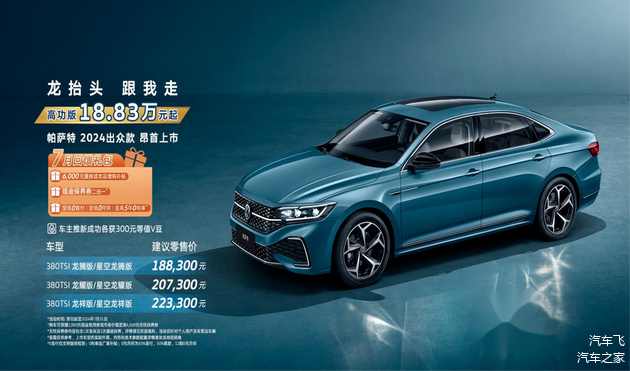 在性价比方面,帕萨特 2024款同样表现出色。以18.83万的价格,消费者即可享受到380TSI高功版车型带来的卓越性能。同时,购车还可享受6,000元的置换或本品增购补贴,进一步降低了购车门槛。