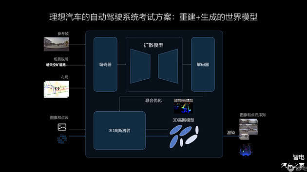 理想汽车的世界模型结合了重建和生成两种技术路径,将真实数据通过3DGS(3D高斯溅射)技术进行重建,并使用生成模型补充新视角。在场景重建时,其中的动静态要素将被分离,静态环境得到重建,动态物体则进行重建和新视角生成。再经过对场景的重新渲染,形成3D的物理世界,其中的动态资产可以被任意编辑和调整,实现场景的部分泛化。相比重建,生成模型具有更强的泛化能力,天气、光照、车流等条件均可被自定义改变,生成符合真实规律的新场景,用于评价自动驾驶系统在各种条件下的适应能力。