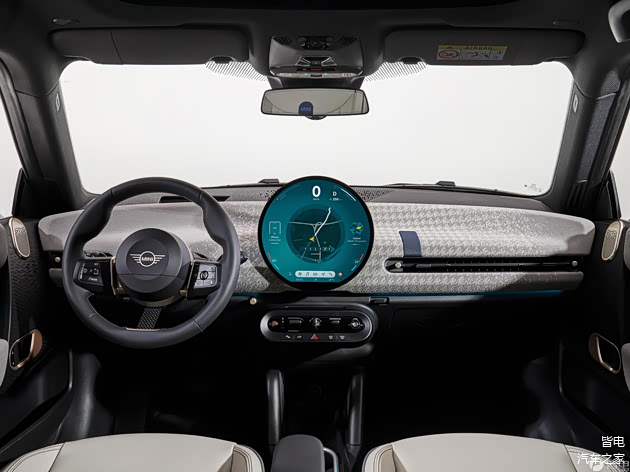 进入车内,大量熟悉的圆形设计元素依旧得以保留,为了更好地适配这个圆形主题,厂家还专门定制了一块圆形的OLED中控屏幕,搭载第9代MINI操作系统,系统简单易用之余,UI设计非常美观。