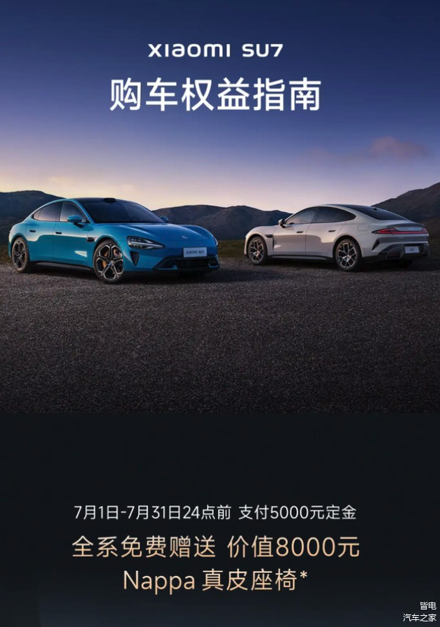 赠8000元Nappa座椅+智驾功能 小米SU7购车权益不变
