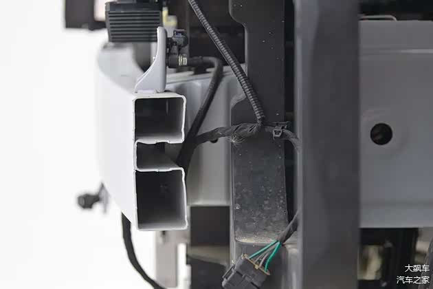 前防撞梁到后方水箱的距离非常近,不足40毫米,如果发生碰撞,对水箱会造成挤压。