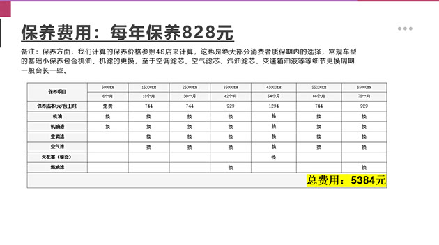 保养费用:1年保养费用828元