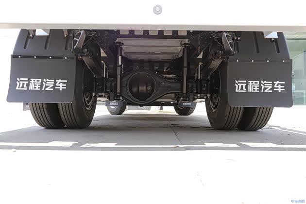 远程星智H8E采用集成式电驱桥,电机+电机控制器+减速机/变速机集成,结构更简单,自重更轻。电机由远程智芯、朗高电机和中车时代提供配套,峰值功率120kW,额定功率60kW,最高车速100km/h。底盘方面,远程星智H8E采用了前后钢板弹簧悬架片数为3/3+3,3/5+2,1/1+1,2/2+1,轮胎规格为7.00R16LT 8PR,载重能力不错。
