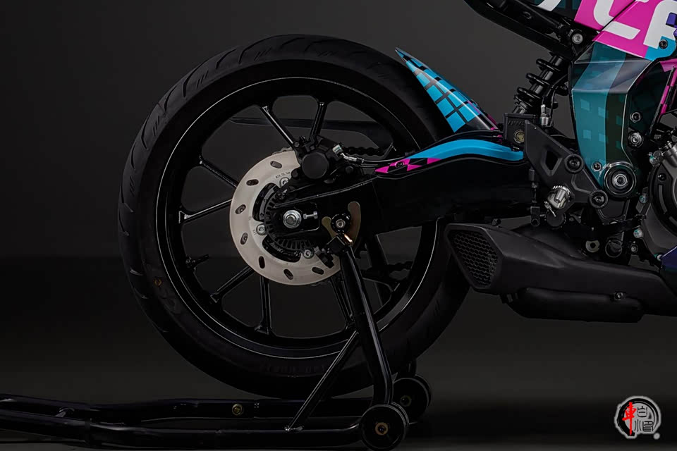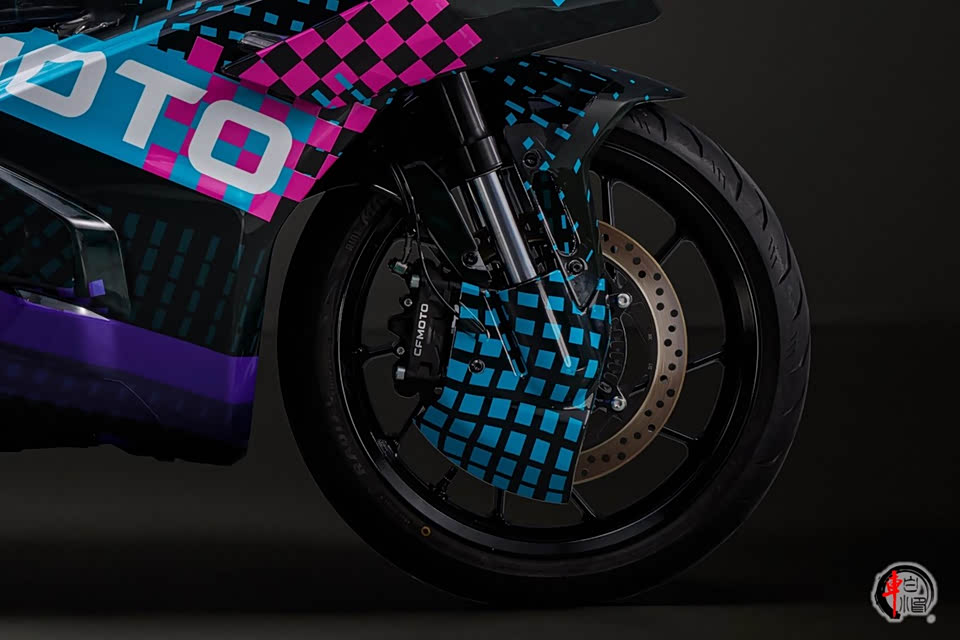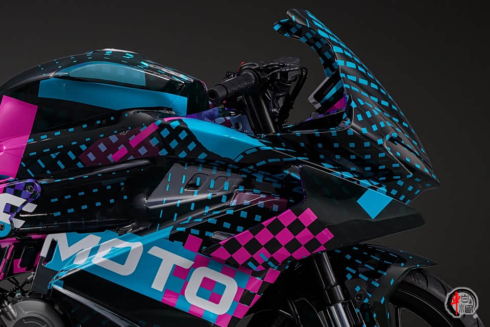 250SR-R在外观配置上,采用了全包围车身设计,增加了定风翼和风挡面积,强化了速度感。同时,细节方面也进行了调整,如刹车盘导流罩的添加,打造出具有竞技感的赛道风格。