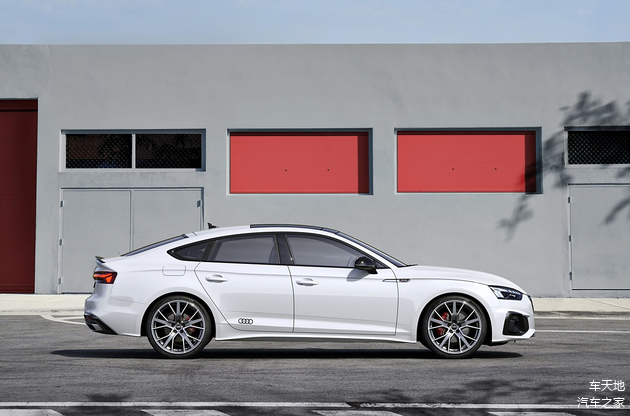 车身侧面,全新奥迪A5完美融合了A4的稳重与A5的动感。它采用了溜背式轿车造型,这一设计不仅优化了空气动力学性能,也让整车看起来更加流畅、优雅。与此同时,有框车门的保留则体现了对A4经典设计的尊重。大尺寸轮毂、动感的腰线以及半隐藏式车门把手等细节处理,都进一步提升了车辆的视觉冲击力。
