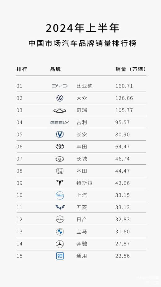 紧随其后的是著名“技术流”奇瑞汽车,在2024年的前六个月交出了105.7万台的优秀成绩单。作为在燃油和新能源领域均卓有建树的研发型车企,奇瑞不仅聚焦国内消费者的最前沿需求,更是将中东、南美和中东欧等地区视为未来发展的重点攻关点位,通过出口和建立生产基地等形式拉升销量、提高企业的全球影响力。同比亚迪一样,奇瑞同样具备走向全球的企业愿景与雄厚实力,未来有望成为比亚迪的强劲对手。