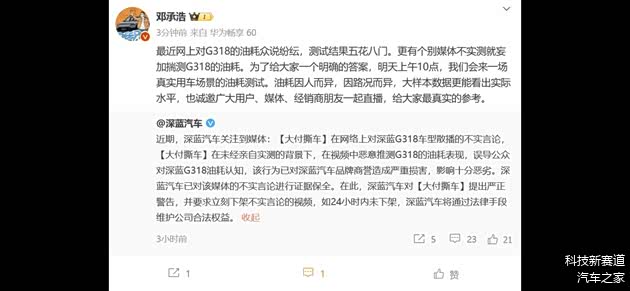 在这场油耗迷雾越来越浓时,深蓝汽车通过官方微博宣布将于7月21日进行一场公开直播实测,直播会以一种公开、透明、严谨的态度进行测试,为所有关注这款车型的人提供一个真实、可信的油耗数据。