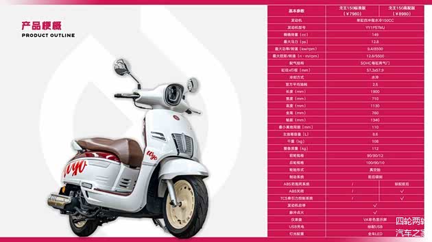 该款发动机具备脉冲启动和自动启停功能,高配版则是多了可关闭的ABS以及TCS牵引力控制系统,另外车辆还标配液晶仪表,USB充电接口,全车LED灯源等配置。
