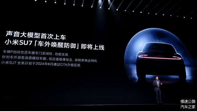 发布会上,小米自研的声音大模型首次亮相,它能实时识别自然界和生活中的各种声音,如婴儿哭声、水滴声,还能理解这些声音背后所处的环境和所表达的情绪。其中,声音大模型将应用到小米SU7上,带来创新的「车外唤醒防御」功能,它能够识别发声环境,无视车外的语音指令,让语音控车更安全,7月底将陆续升级。