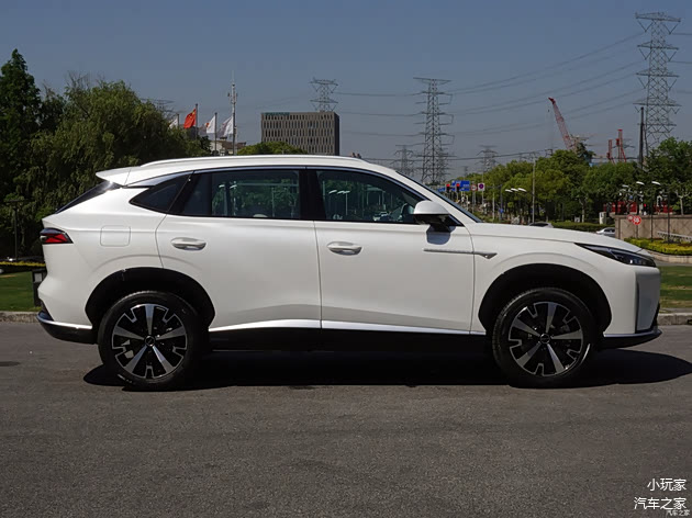 车身尺寸方面,荣威D5X DMH长宽高分别为4700×1890×1664mm。侧身比例和谐,引擎盖长度占比设置的比较合理,让荣威D5X DMH看上去比较修长,四米七的车长和2765mm的轴距,在紧凑级SUV中,也属于大块头了。值得注意的是,荣威D5X DMH高配版顶部配有可开启全景天窗,空间感相当不错,再搭配大尺寸撞色轮毂和贯穿式后尾灯,有效提高了辨识度和时尚气息。